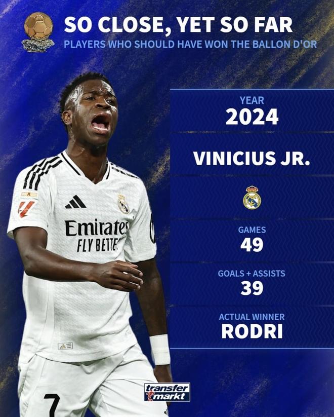 时代口味与时点:哈兰德、亨利、维尼修斯——都强,但输在评奖“故事感”。