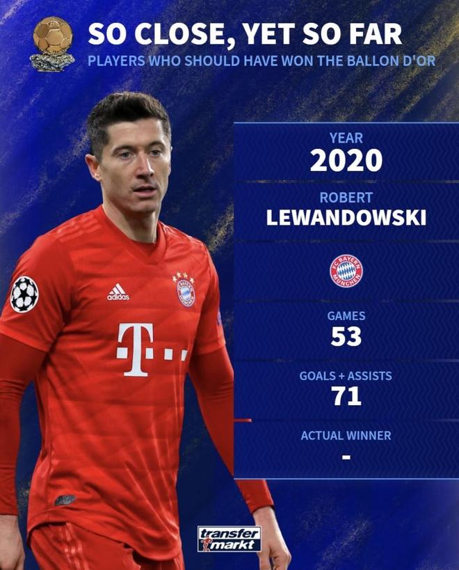 最冤:莱万(2020)——制度性缺席。